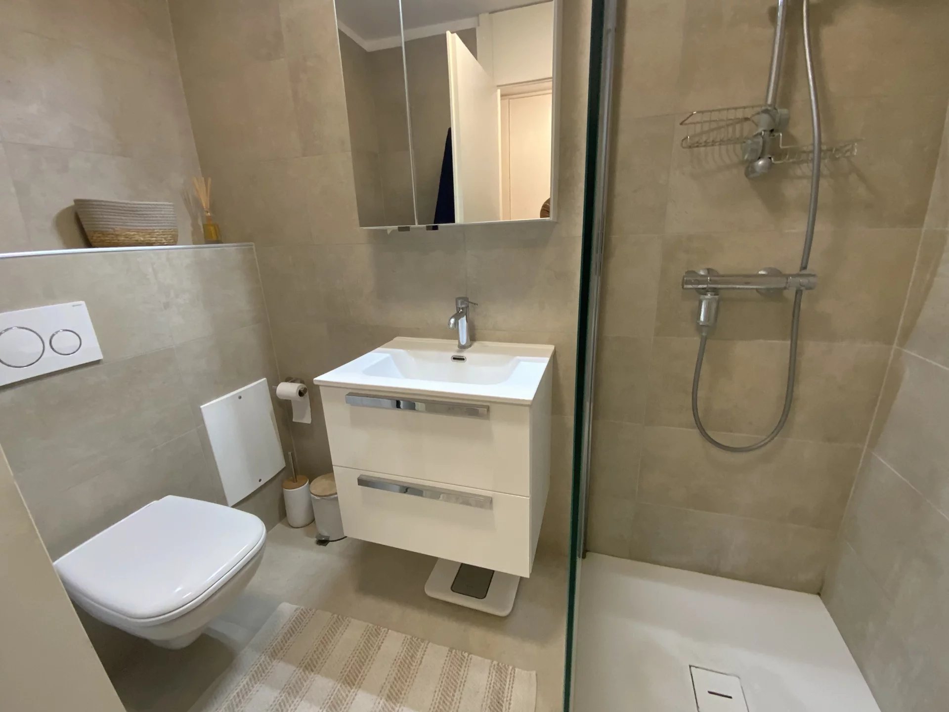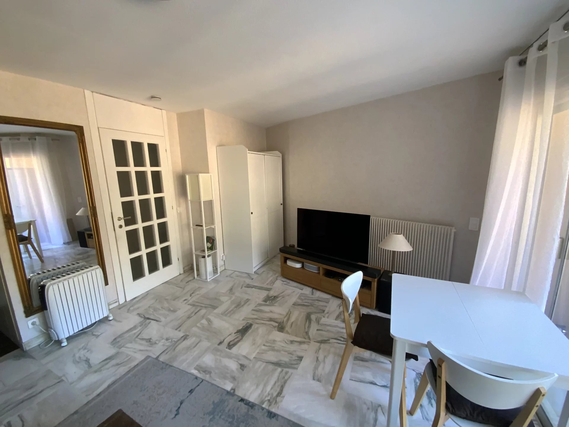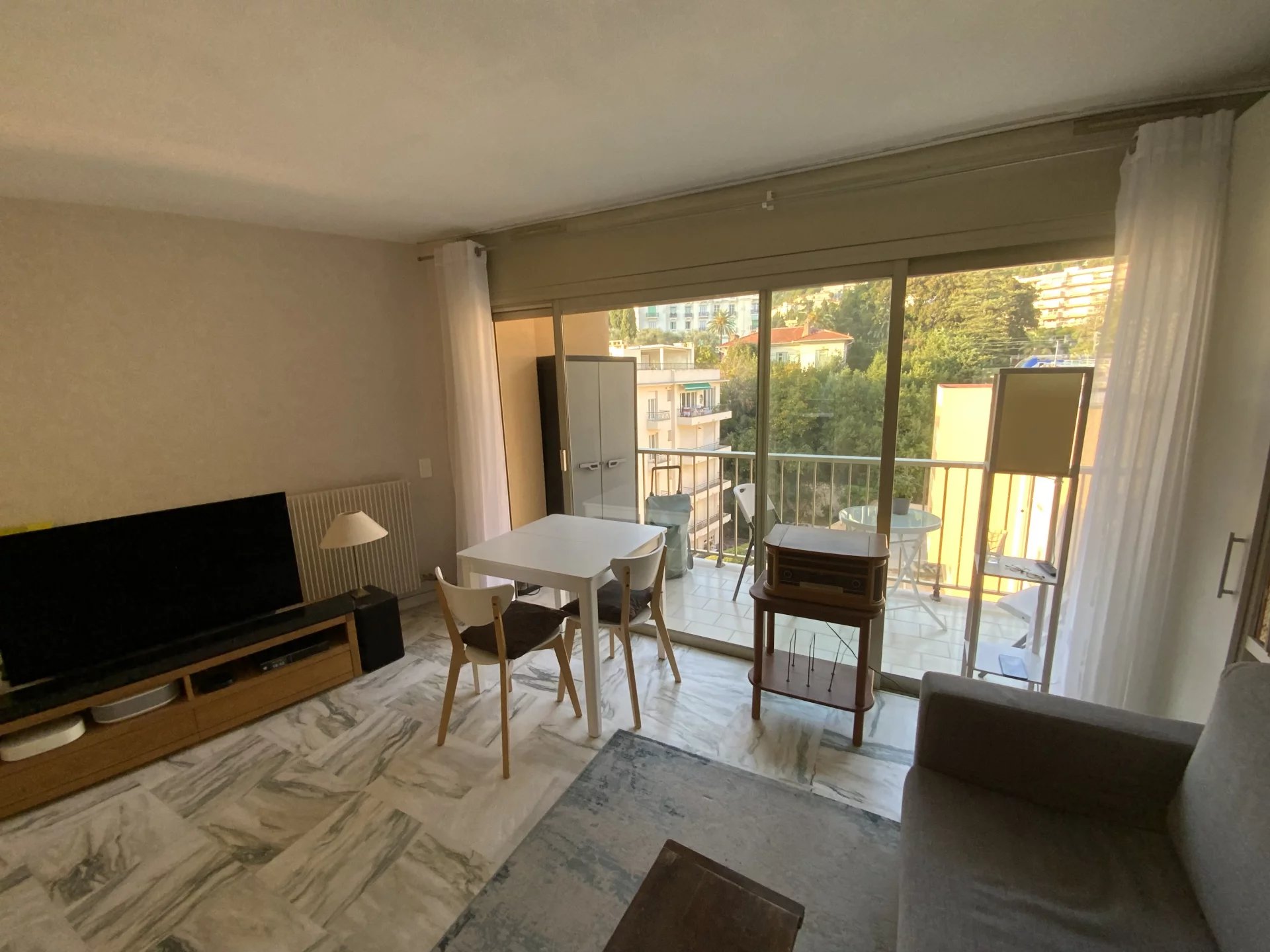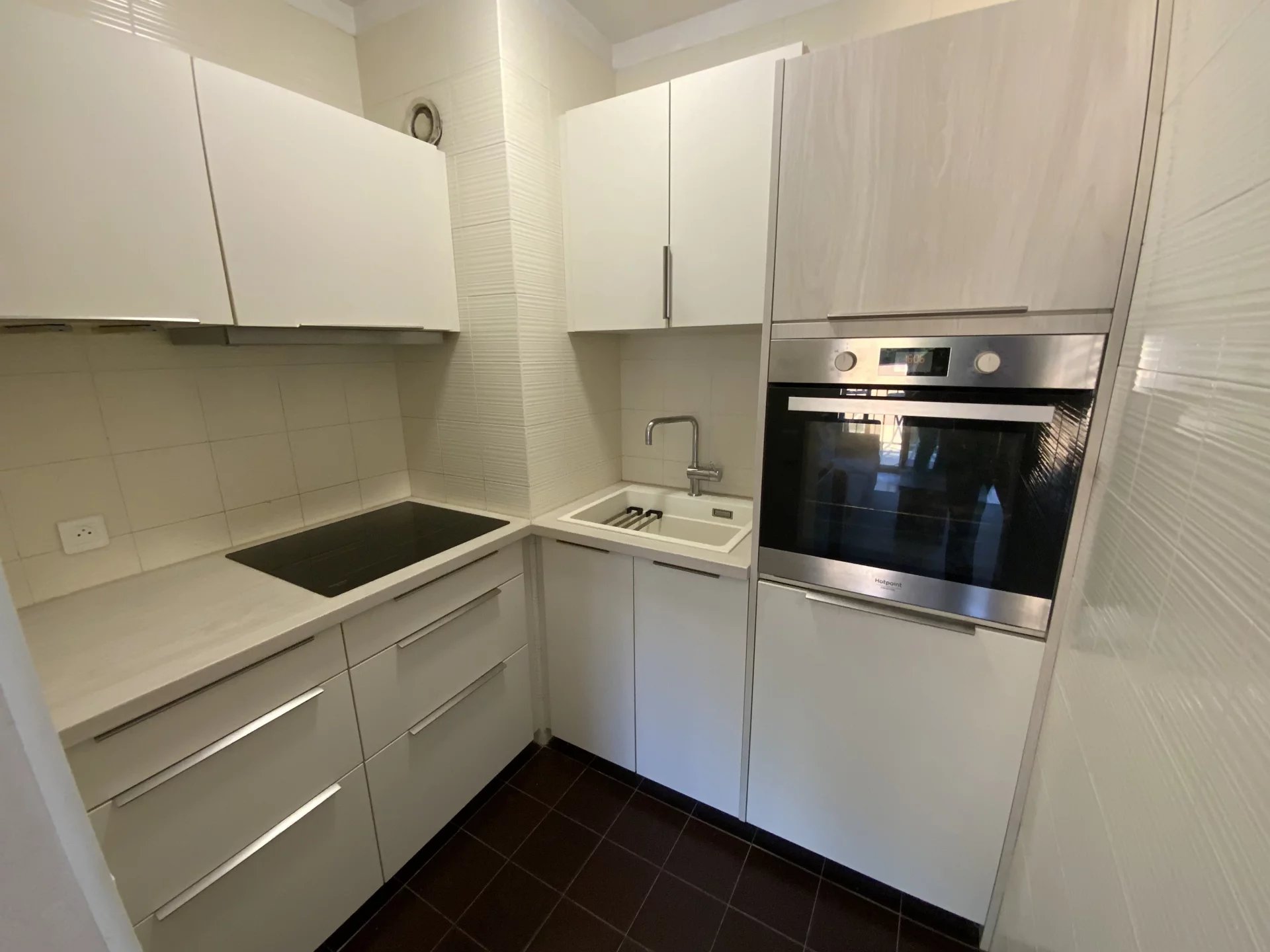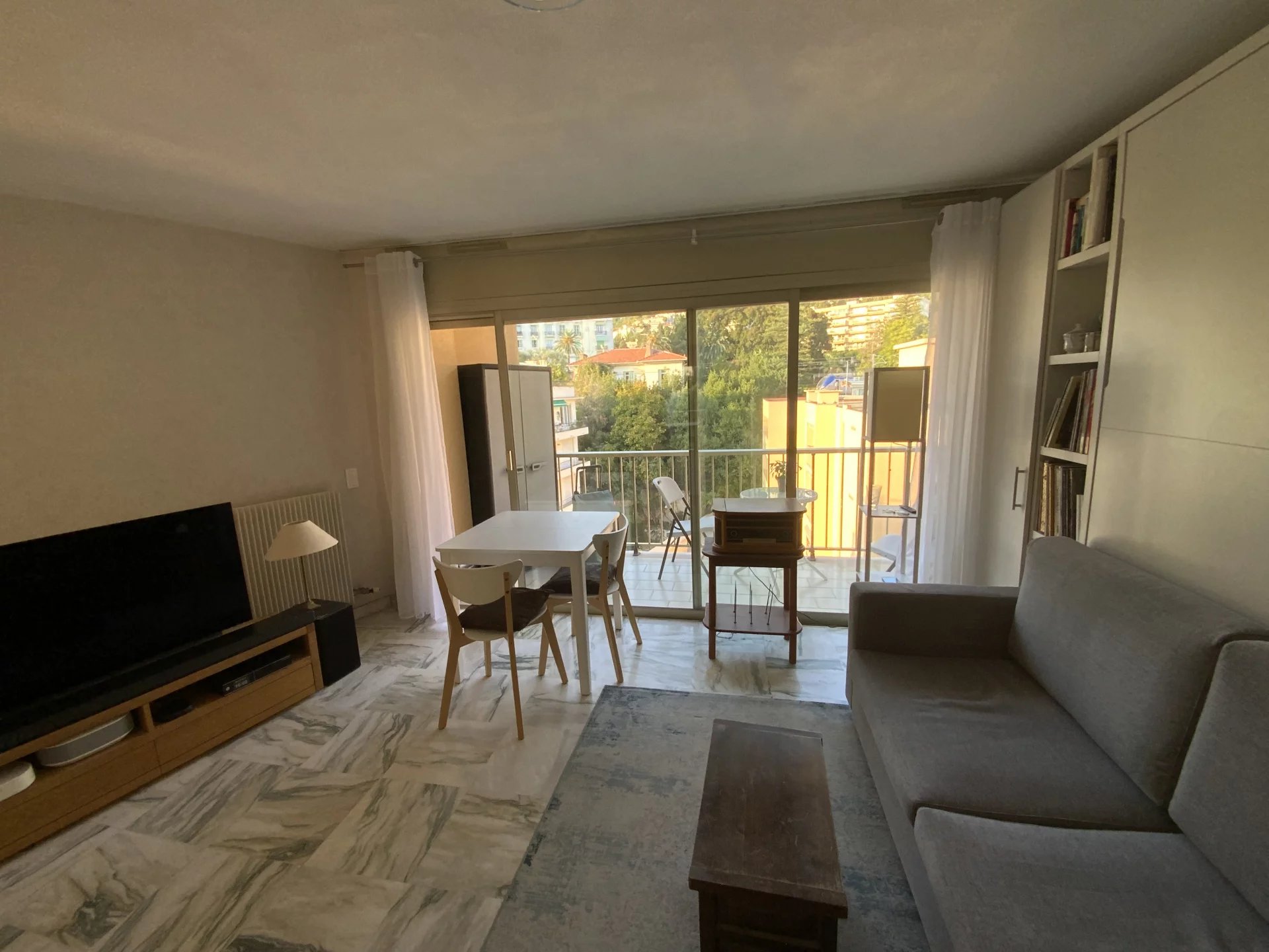 EXCLUSIVITE MENTON GARAVAN, dans une residence de standing en bord de mer, beau studio de 30,47 m2 loi carrez, au cinquième étage, terrasse. Vendu avec meuble/lit très design. Cave. Inclus dans les charges le chauffage, eau froide et chaude.